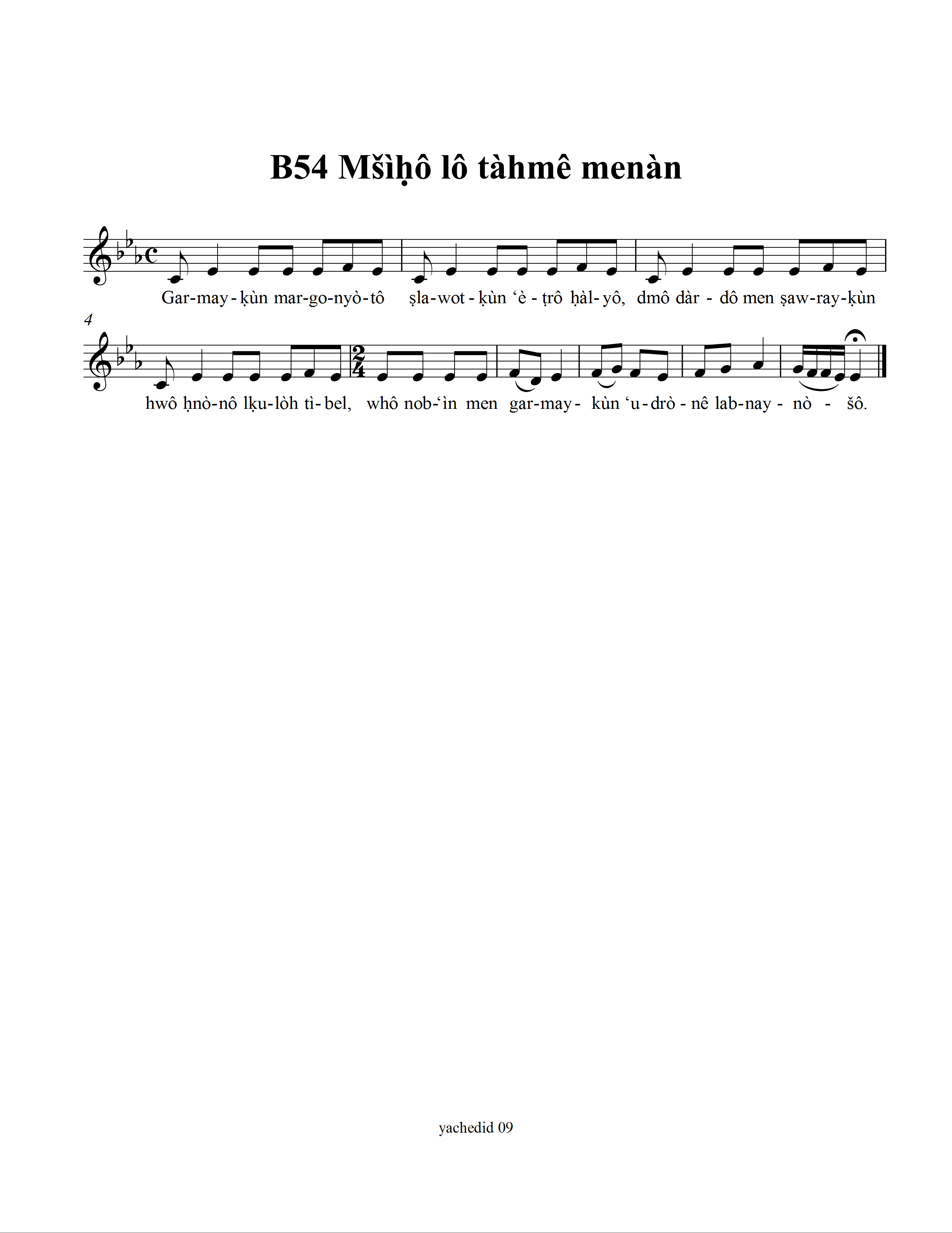 Pièce B54 Mšìḥô lô tàhmê menàn